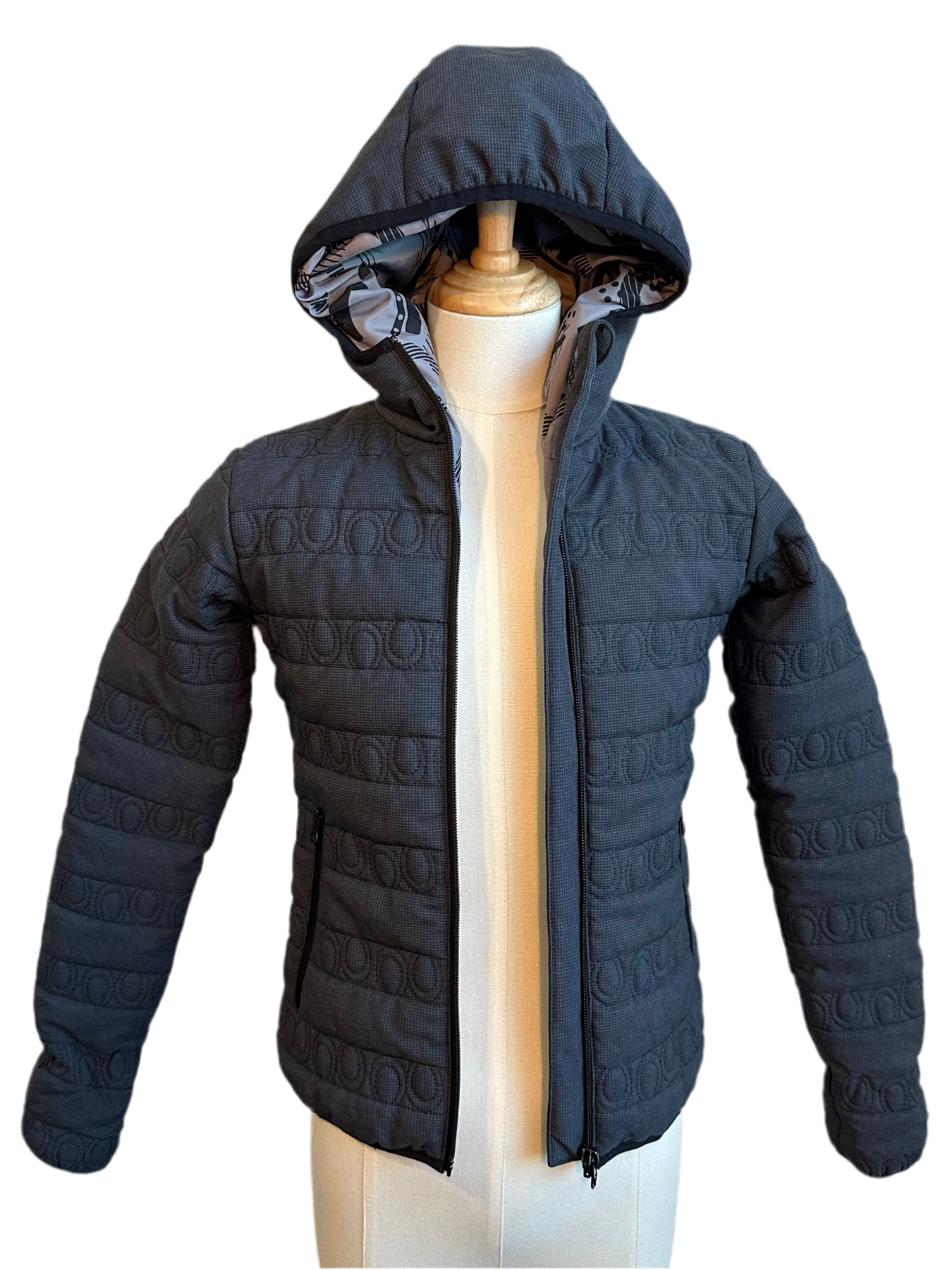 Great condition. Hooded, quilted puffer jacket with zipper closure pockets.