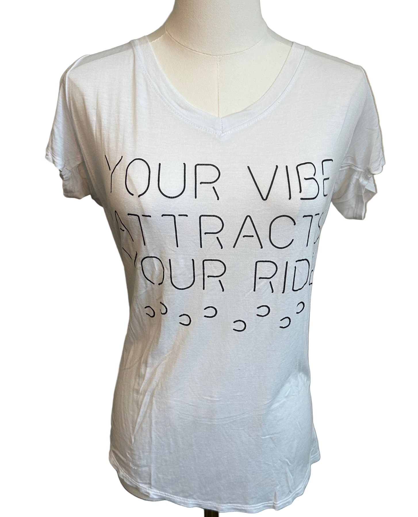 Great condition. “Your vibe attracts your ride” V-neck t-shirt.